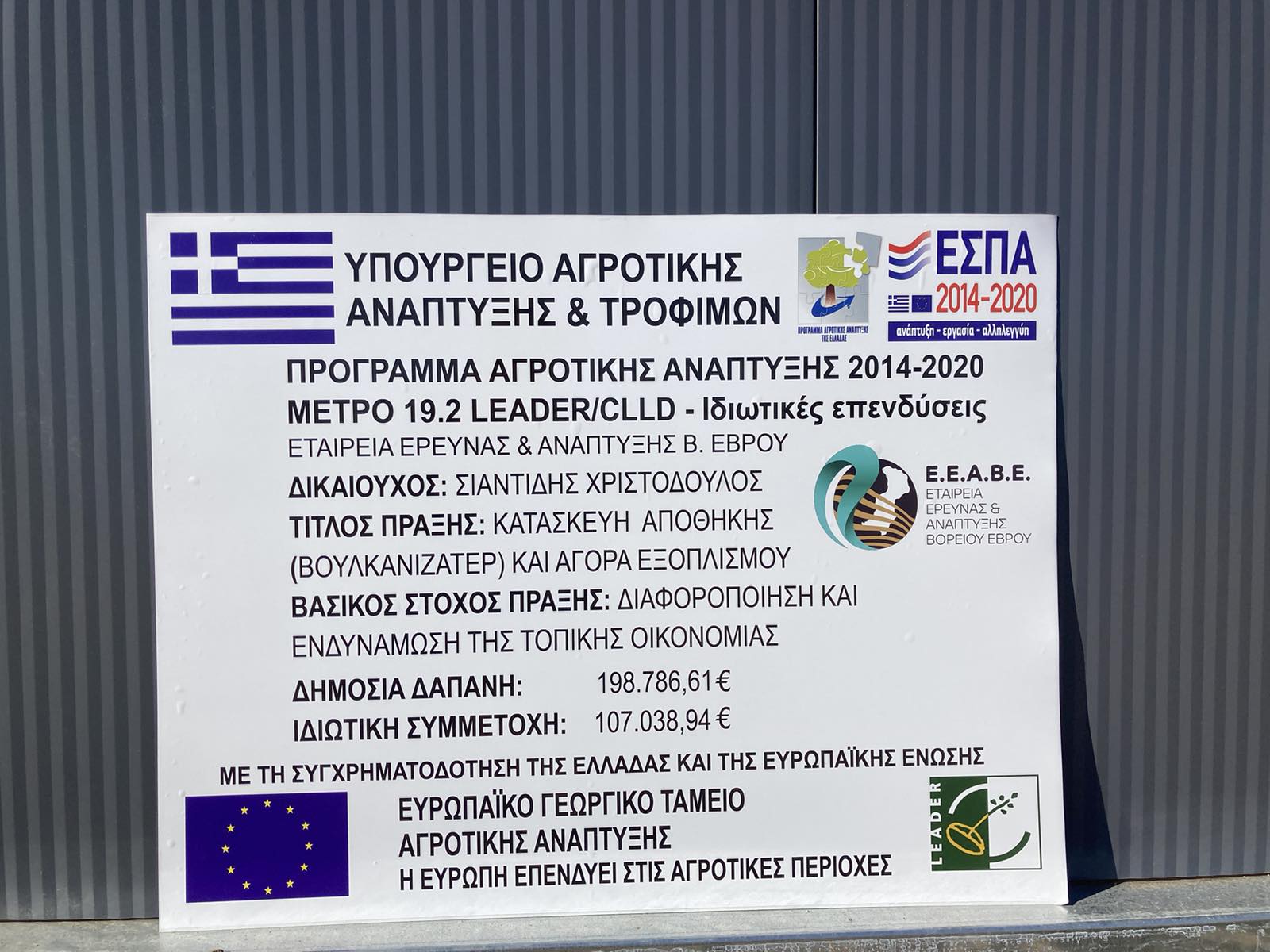• Κωδ. ΠΣΚΕ LD021-0048667 – ΣΙΑΝΤΙΔΗΣ ΧΡΙΣΤΟΔΟΥΛΟΣ – ΚΑΤΑΣΚΕΥΗ ΑΠΟΘΗΚΗΣ (ΒΟΥΛΚΑΝΙΖΑΤΕΡ) ΚΑΙ ΑΓΟΡΑ ΕΞΟΠΛΙΣΜΟΥ. Δημοσίας Δαπάνης 36.797,03€,  τελική πληρωμή.