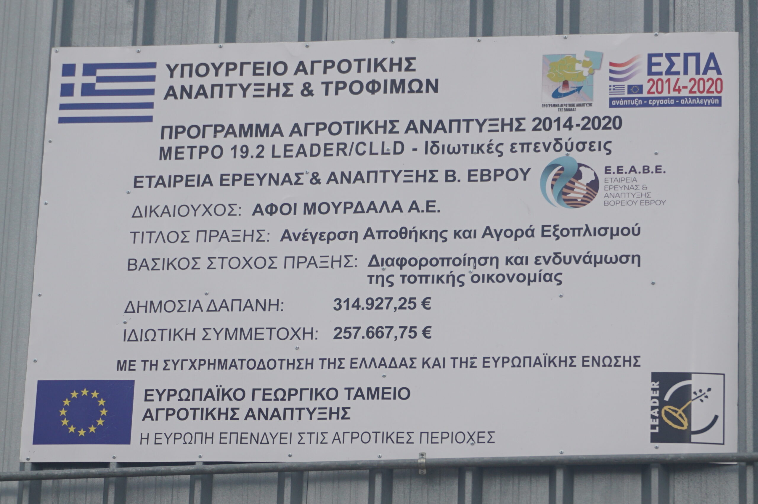 Κωδ. ΠΣΚΕ LD021-0053401 – ΑΦΟΙ ΜΟΥΡΔΑΛΑ Α.Ε. – ΑΝΕΓΕΡΣΗ ΑΠΟΘΗΚΗΣ ΚΑΙ ΑΓΟΡΑ ΕΞΟΠΛΙΣΜΟΥ. Δημοσίας Δαπάνης 6.927,25€, τελική πληρωμή.